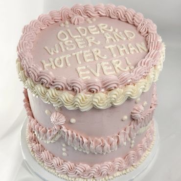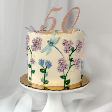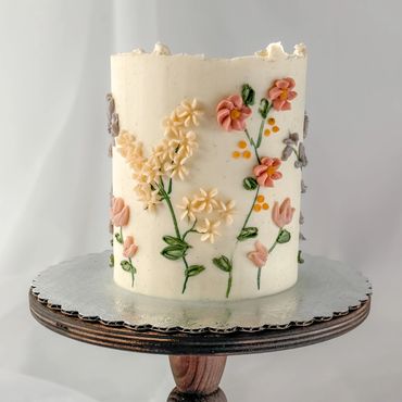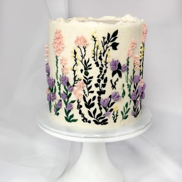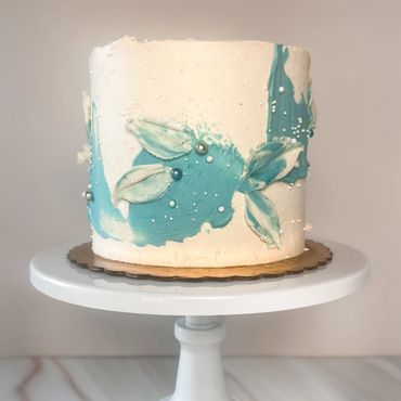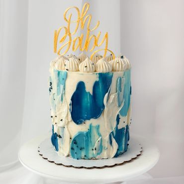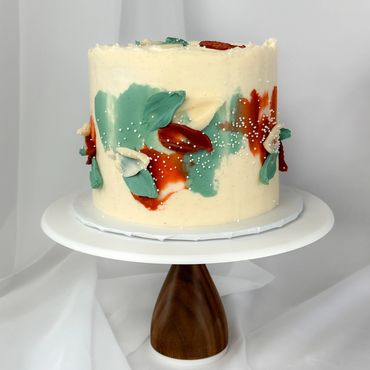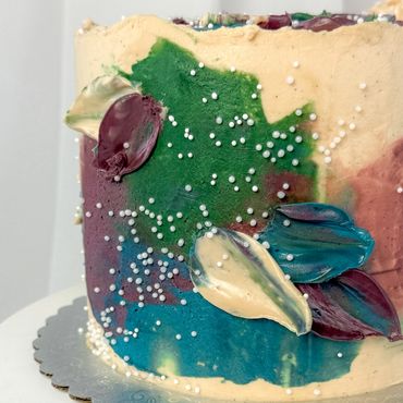 Abstract, modern palette knife cake with Swiss meringue buttercream.